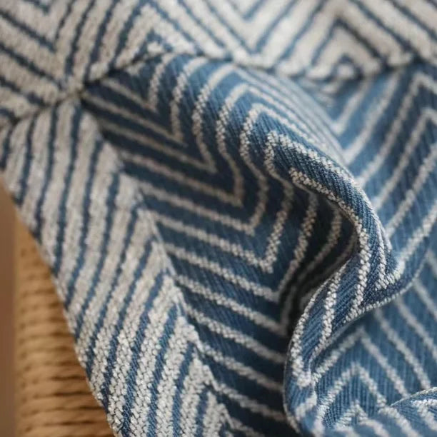 Vår Blå lystett gardin med sikksakkmønster er designet for å imponere. Det intrikate sikksakkmønsteret er vevd med presisjon, noe som gir en taktil og visuelt interessant tekstur. Fargene er nøye utvalgt for å komplementere en rekke interiørstiler, fra det minimalistiske til det mer bohemske. Den dype blåfargen gir en følelse av ro og stabilitet, mens det lyse mønsteret tilfører energi og bevegelse. Dette er en gardin som ikke bare dekorerer, men som også forteller en historie om kvalitet og god smak i hjemmet ditt.