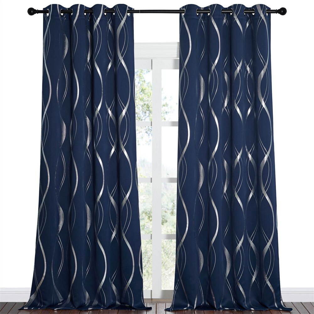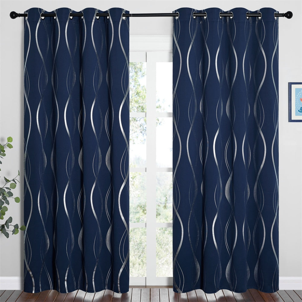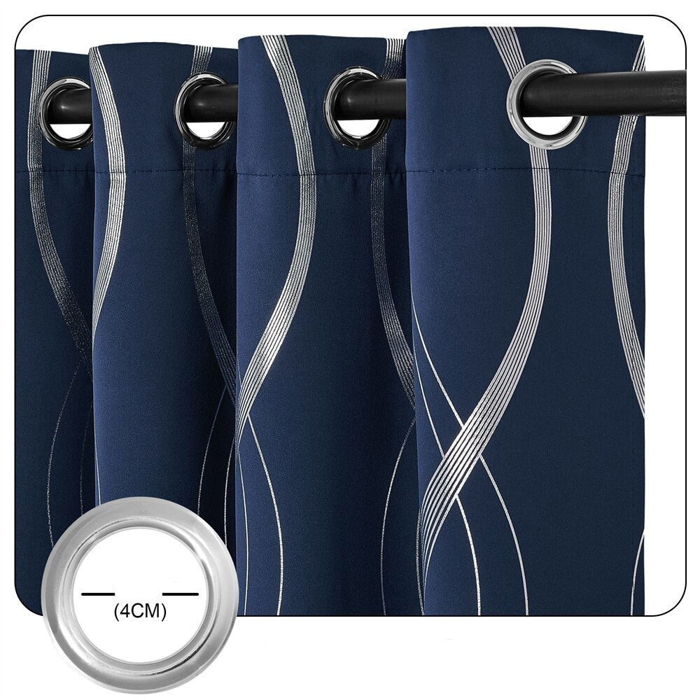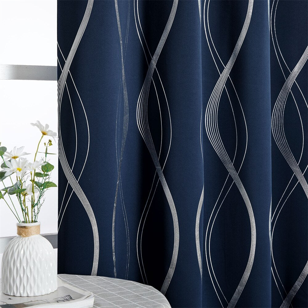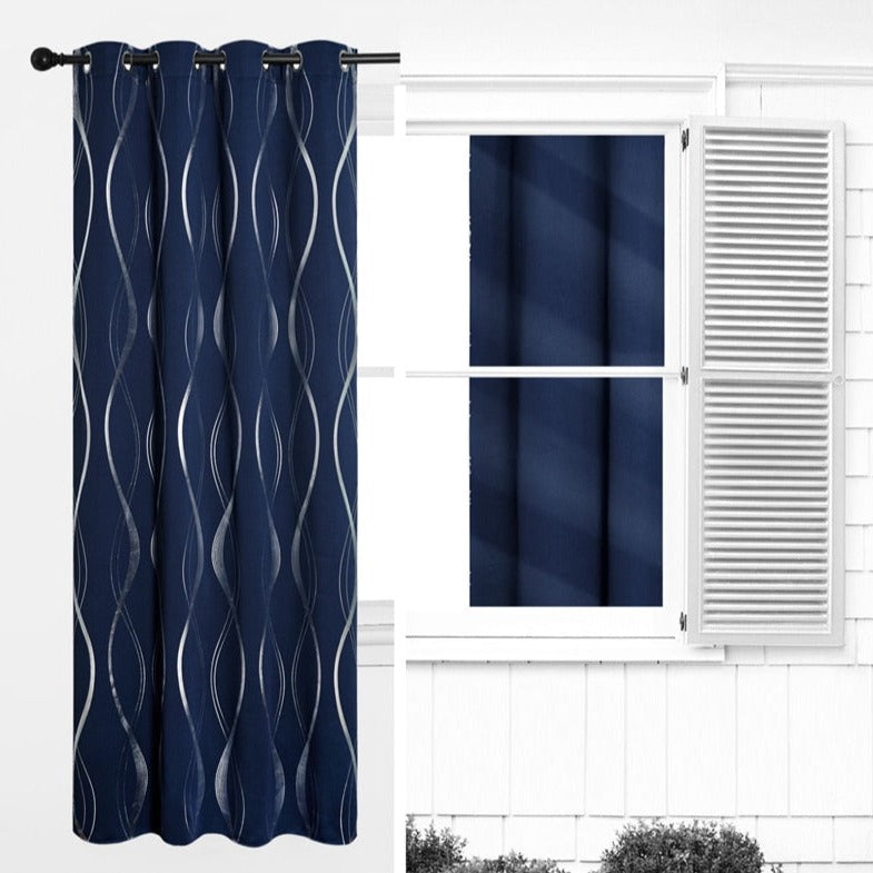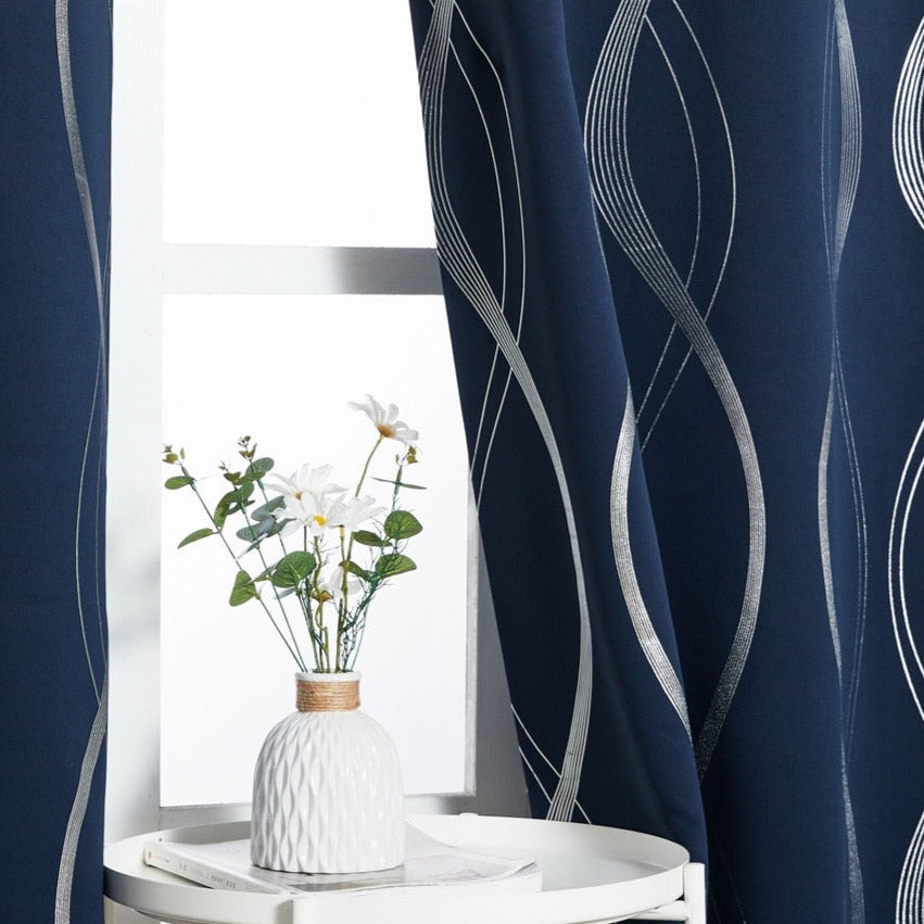 Oppdag den elegante Blå lystette gardinen med sølvmønster