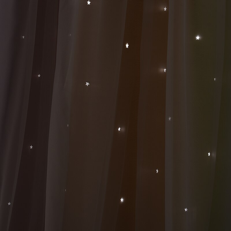 - Glitterdetaljer: Små, skinnende stjerner vevd inn i stoffet som fanger lyset vakkert.