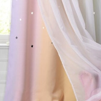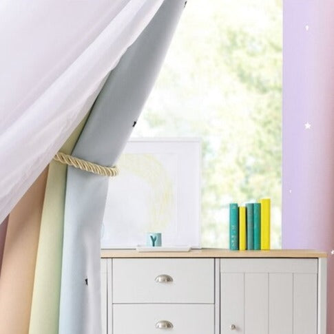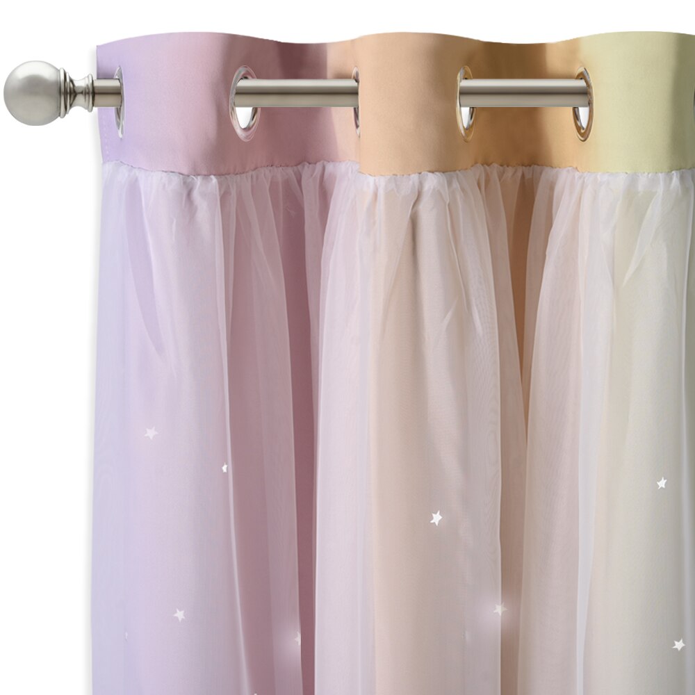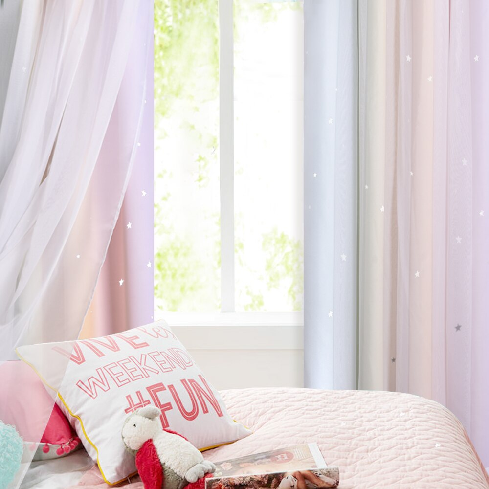 Vår fargerike florlette gardin for uteplass er mer enn bare et tekstil; den er en stemningsskaper. Med sine duse pastellfarger og delikate stjernedetaljer, vekker den assosiasjoner til sommerlige drømmer og varme netter. Tenk deg hvordan sollyset filtreres gjennom de lette stoffene, og skaper et mykt og behagelig lys som inviterer til lange samtaler og rolige stunder. Gardinen er enkel å henge opp og kan enkelt trekkes til side med et dekorativt bånd når du ønsker full åpenhet. Gi uteplassen din et personlig og sjarmerende preg med denne unike gardinen som både er funksjonell og estetisk tiltalende.