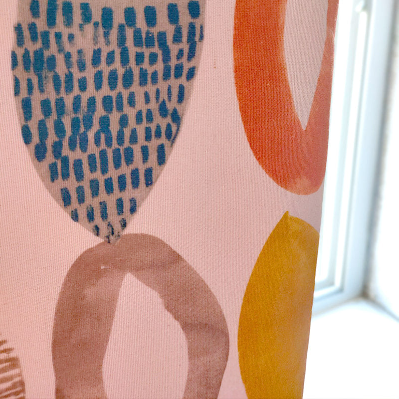 Gi hjemmet ditt et løft med vår unike gardin som kombinerer livlige farger og et moderne retro-mønster. Denne gardinen er perfekt for deg som ønsker å tilføre personlighet og varme til ethvert rom. Tenk deg hvordan de lekne ovalene og de innbydende fargene – fra dypblå til solgul, brent oransje og rustrød – vil fange lyset og skape en atmosfære av glede og kreativitet. Den tidløse designen gjør at gardinen passer inn i både klassiske og moderne interiører, og gir rommet en umiddelbar følelse av karakter og stil.