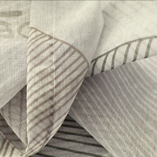 Vår florlette gardin er mer enn bare et vinduspryd; den er en opplevelse. Materialet er valgt med omhu for å gi den perfekte balansen mellom privatliv og lysgjennomslipp. Du får et rom som føles åpent og luftig, samtidig som du bevarer en viss grad av innsyn. Det grå bladmotivet er diskret nok til å ikke dominere, men likevel tydelig nok til å gi rommet karakter og stil. Tenk deg en rolig morgenkaffe ved vinduet, der gardinen danser lett i brisen og inviterer naturen inn. Dette er gardinen for deg som verdsetter skjønnhet, funksjonalitet og en tidløs design. Den er designet for å tåle tidens tann og forbli et vakkert element i ditt hjem i mange år fremover.