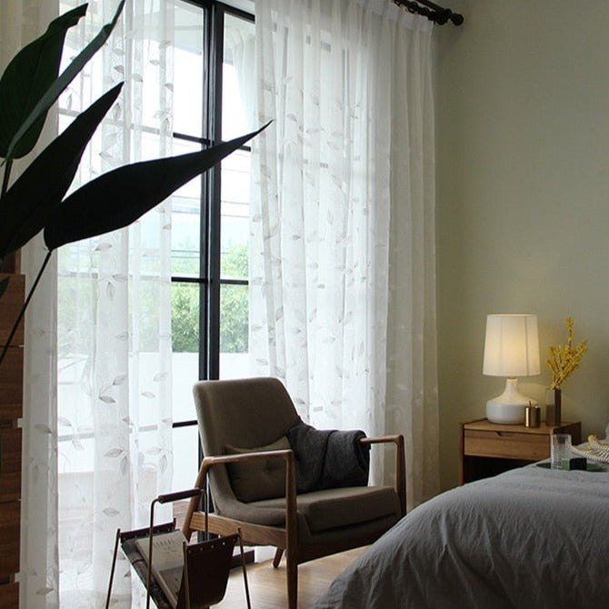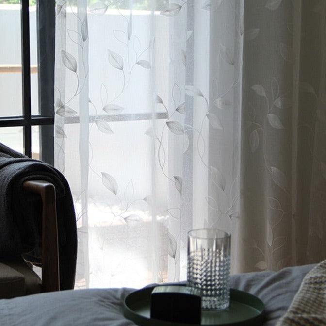 En Elegant Touch med Vår Gjennomsiktige Tyllgardin med Broderte Blader