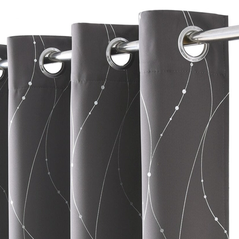 Denne gardinen er ikke bare praktisk, den er også et elegant tillegg til ethvert rom. Den dype gråfargen gir et moderne og sofistikert uttrykk, mens de delikate sølvdetaljene i et bølgende mønster legger til et snev av luksus og personlighet. Mønsteret er subtilt nok til å passe inn i de fleste interiørstiler, men likevel iøynefallende nok til å fungere som et stilig element i seg selv. Tenk deg hvordan den vil komplementere dine møbler og skape en harmonisk atmosfære i hjemmet ditt. Den passer perfekt inn i minimalistiske, moderne eller klassiske hjem, og er enkel å kombinere med andre farger og teksturer. Gardinens tidløse design sikrer at den vil holde seg moderne og relevant i mange år fremover.