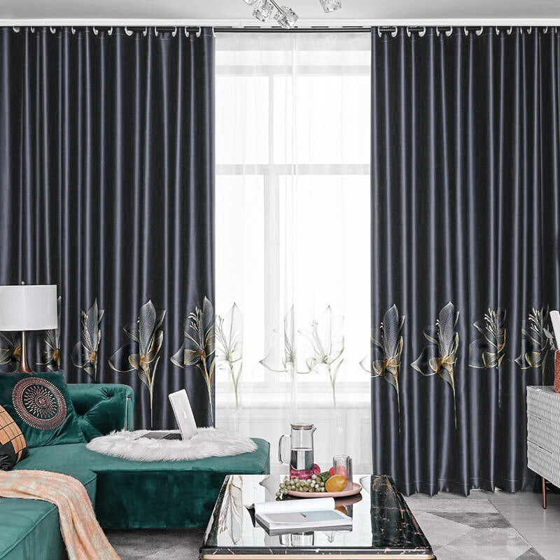 Hvorfor velge vår Grå mørkleggingsgardin med gyllent motiv?