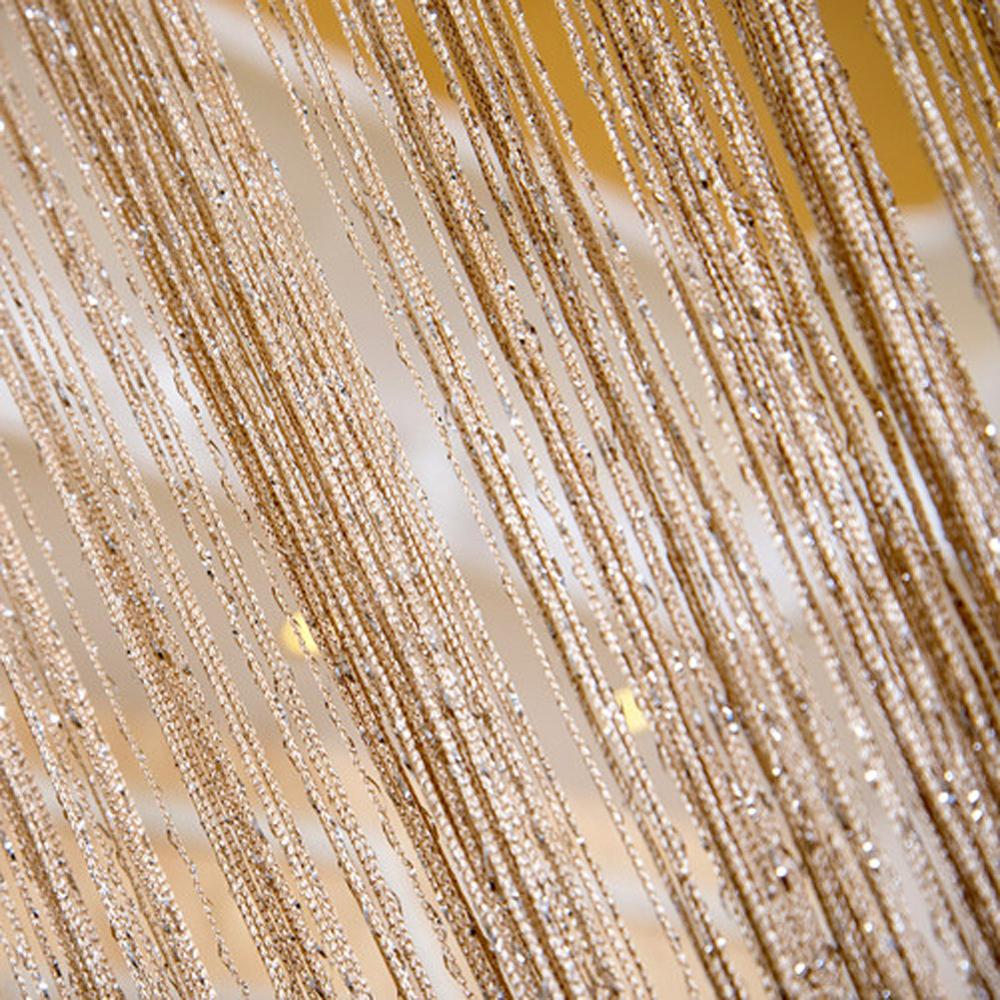 Kjenn den myke berøringen av tusenvis av fine tråder når du drar fingeren gjennom vår gullfarget trådgardin med glitter. Det er ikke bare et visuelt mesterverk, men også en taktil opplevelse som beriker ditt hjem. Tenk deg å kunne transformere et vanlig rom til et glitrende eventyrland på bare minutter. Enten du ønsker å skape en romantisk stemning for en spesiell anledning, eller bare ønsker å legge til litt hverdagsglamour, vil denne gardinen imponere. Den er designet for å fange lyset og skape en levende, dynamisk effekt som endrer seg gjennom dagen. Gjør ditt hjem til et sted hvor hverdagen føles litt mer spesiell.