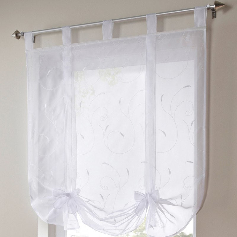 Vår hvite liftgardin med røde bånd er ikke bare en praktisk løsning, men også et dekorativt element som fanger blikket. Det semitransparente stoffet, utsmykket med delikate røde rankemønstre, gir en følelse av letthet og eleganse. Tenk deg hvordan disse gardinene vil ramme inn utsikten din, og samtidig tilføre rommet et snev av romantikk. De justerbare båndene gjør det enkelt å heve og senke gardinen til ønsket høyde, og skaper en nydelig folder som tilfører tekstur og dybde. Denne hvite liftgardinen med røde bånd er et ideelt valg for stuen, soverommet eller kjøkkenet, og vil uten tvil bli et samtaleemne blant dine gjester.