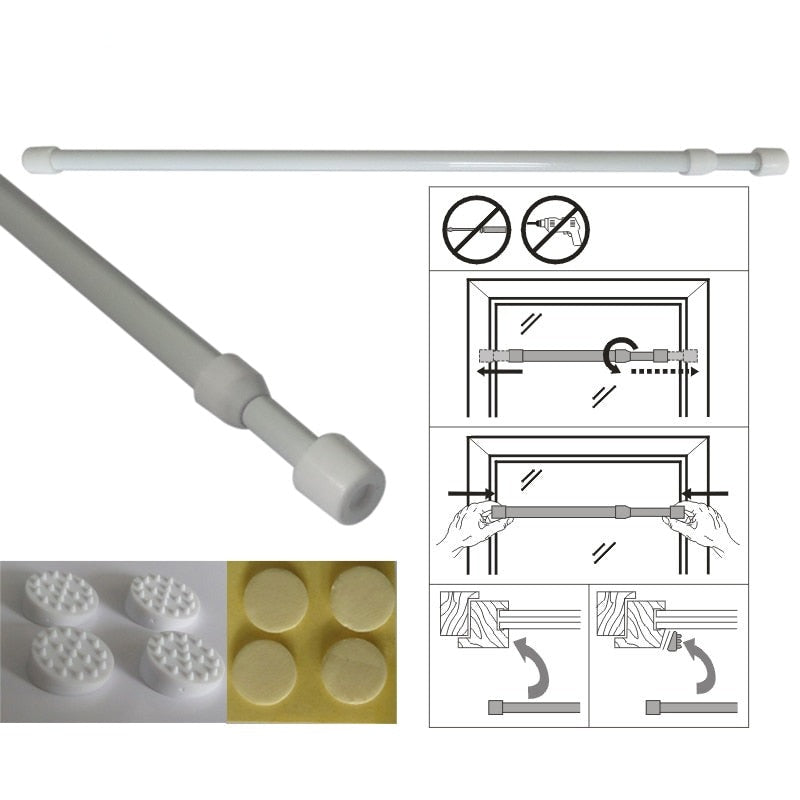 Glem kompliserte bruksanvisninger og frustrerende montering! Vår justerbare gardinstang er utrolig enkel å installere. Du trenger ingen skruer, plugger eller bor – bare vri og tilpass lengden slik at den sitter perfekt mellom to vegger eller i en vindusramme. De solide endestykkene gir et godt grep og sikrer at gardinstangen holder seg på plass, selv med tyngre gardiner. Nå kan du enkelt bytte gardiner etter sesong eller humør, uten å bekymre deg for varige merker på veggene.