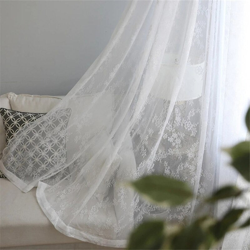 Opplev eleganse og funksjonalitet med våre Klassisk nett-tyllgardin med blomsterdekor. Designet for å gi rommet ditt stil og varme, kombinerer de raffinert design med praktisk bruk.