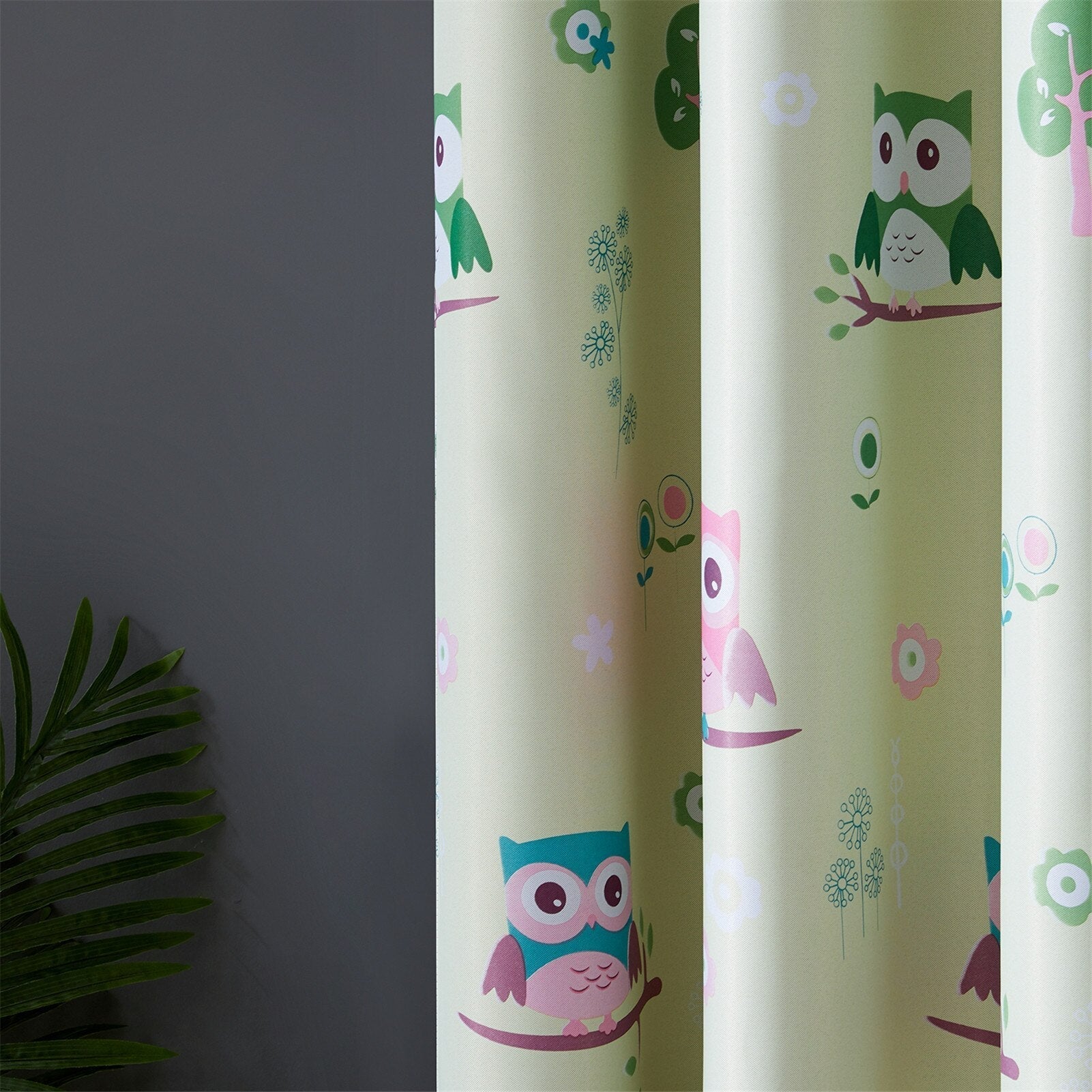 Gi rommet et løft med en kremfarget lystett gardin med ugler og skap et sted fylt med fantasi og ro.