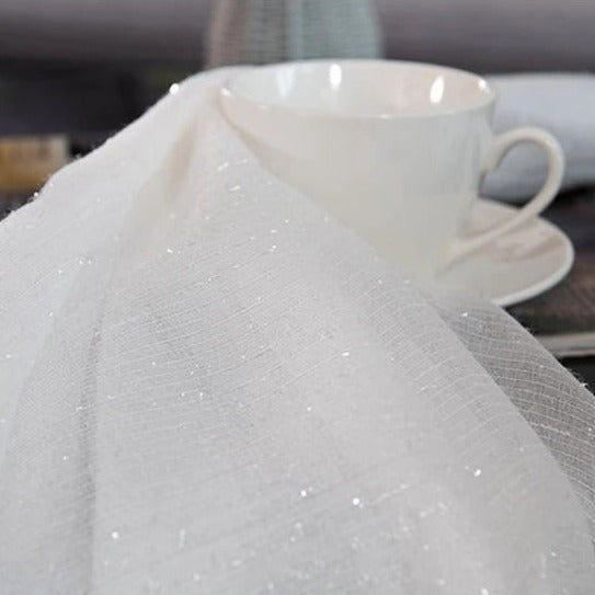 Denne gardinen er mer enn bare et vinduspryd; den er en forvandler av stemning og romfølelse. Forestill deg en tidlig morgen, hvor de første solstrålene filtreres gjennom den lette veven, og de subtile glitterpartiklene danser i lyset – en perfekt start på dagen. Eller en rolig kveld, der rommet fylles med en myk, diffus glød fra innendørsbelysningen som reflekteres i gardinen. Den vil gi rommet et løft, enten du har en moderne, minimalistisk stil eller en mer romantisk og bohemsk innredning. Vår lett gardin med subtil glittereffekt er et bevis på at de små detaljene kan gjøre den største forskjellen, og skape et hjem du elsker å være i.