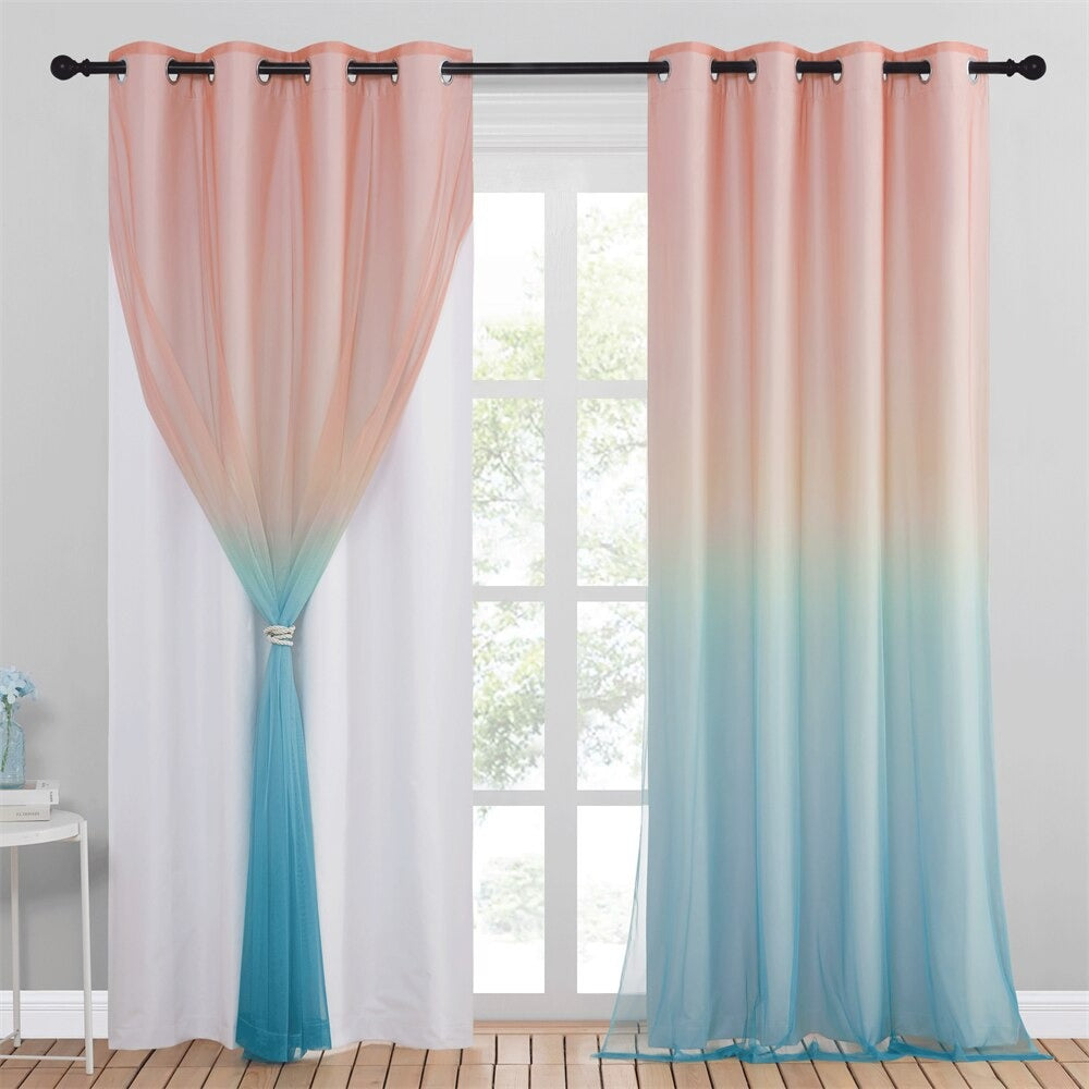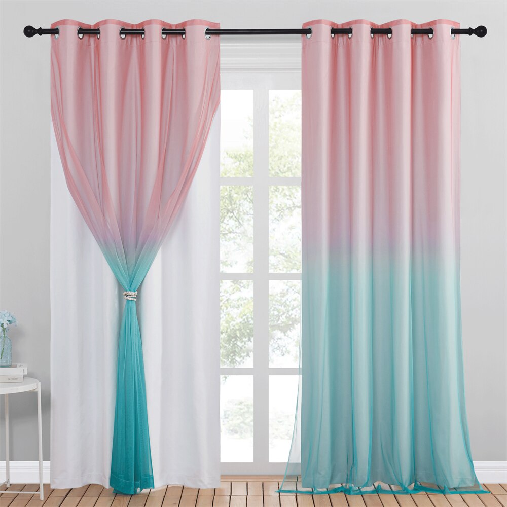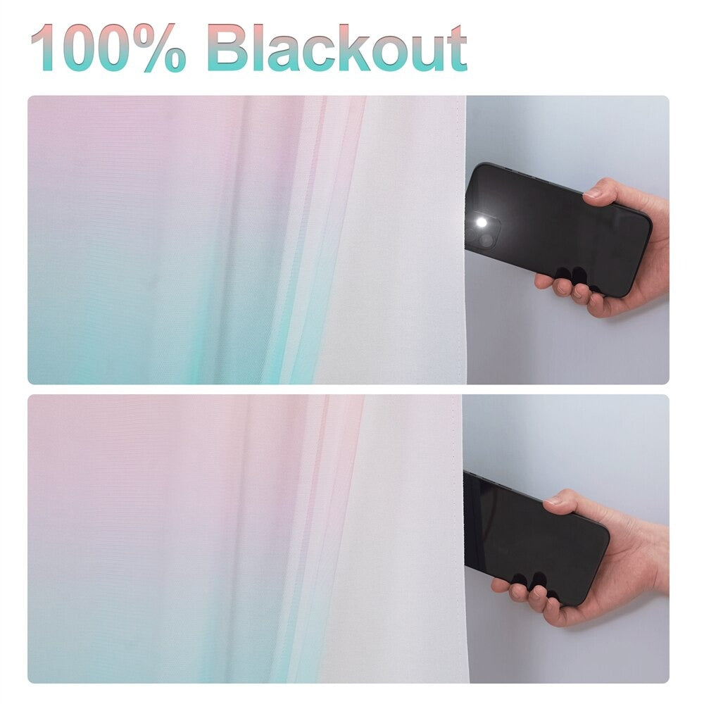 Forvandle rommet ditt til en fredelig oase med våre nydelige lystette gardiner med gradert farge. Denne gardinen er designet for å gi deg det beste av to verdener: effektiv mørklegging og et fantastisk visuelt uttrykk. Tenk deg å våkne opp til en myk glød av lys som filtreres gjennom den delikate fargeovergangen fra myk rosa til beroligende turkis – en perfekt start på dagen, hver dag. Den unike fargegradienten gir et drømmeaktig og moderne preg, noe som gjør den til et blikkfang i ethvert rom, enten det er soverommet, stuen eller et barnerom. Gi hjemmet ditt et løft med et produkt som kombinerer funksjonalitet og uovertruffen stil.