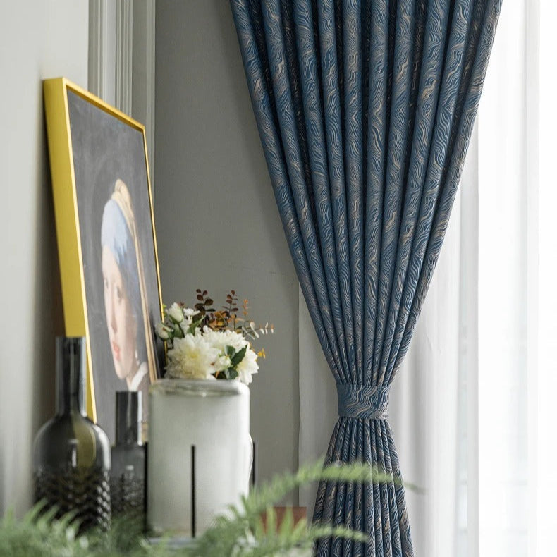 Midnattsblå lystett gardin med tekstur: Gi rommet ditt en elegant touch