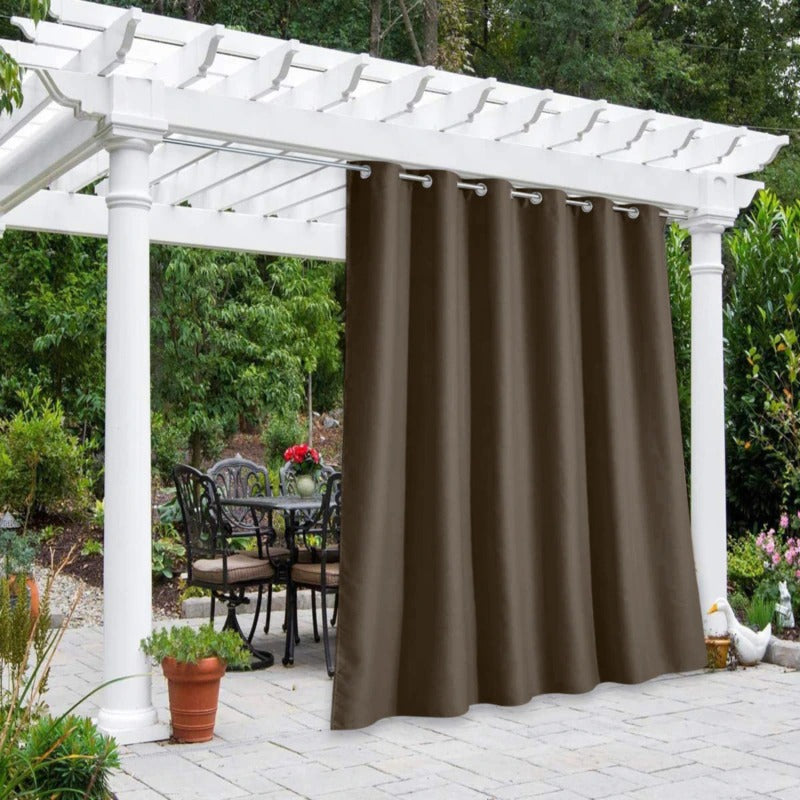 Lei av nysgjerrige blikk eller intens sol når du prøver å slappe av på terrassen? Denne mørke utegardinen er den perfekte løsningen for å skape din egen private oase. Den rike brune fargen gir et elegant og sofistikert preg til ethvert uteområde, enten det er en pergola, et lysthus eller en balkong. Gardinen er ikke bare stilfull, men også utrolig funksjonell. Den gir effektiv beskyttelse mot både innsyn og skadelige UV-stråler, slik at du kan nyte utelivet uten bekymringer. Forestill deg å sitte komfortabelt i skyggen på en varm sommerdag, omgitt av ro og fred.