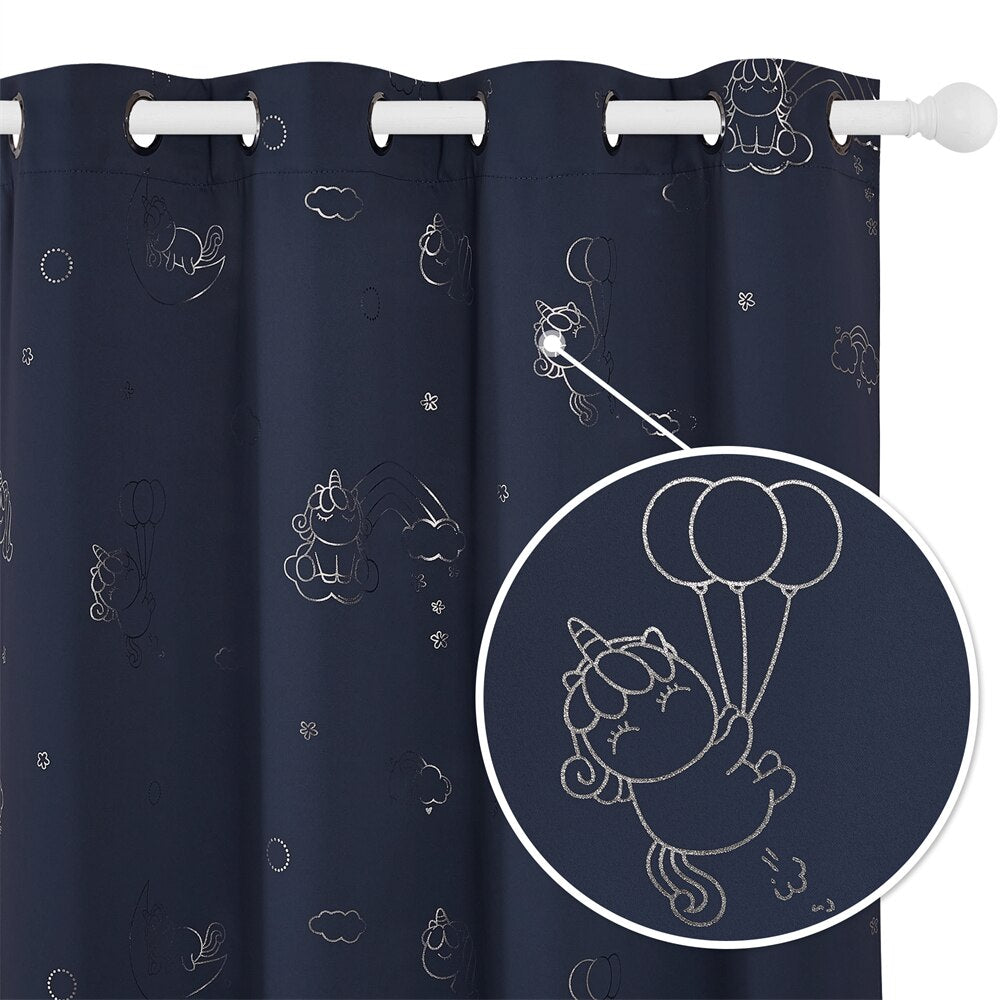 Skab Drømmende Nætter med et Mørkeblå Gardin med Sølv Enhjørninger