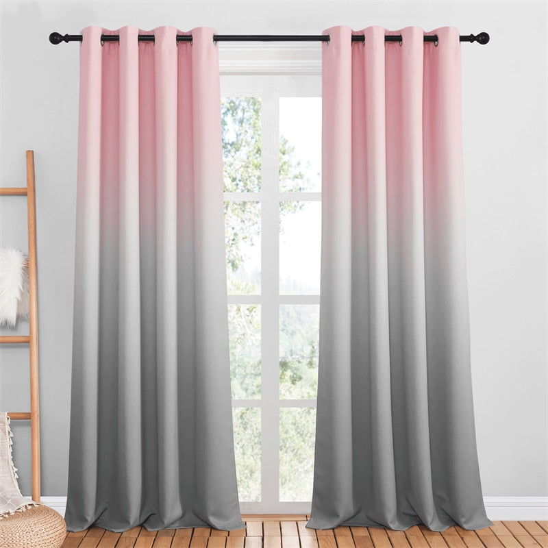Opplev fordelene med en mørkleggingsgardin med rosa og grå gradient
