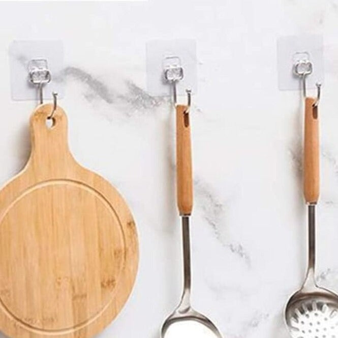 Lei av rot og mangel på oppbevaringsplass? Vår selvklebende krok for vegg er den perfekte løsningen for et ryddigere hjem! Denne geniale kroken fester seg enkelt på de fleste glatte overflater uten behov for boring eller verktøy. Tenk deg å kunne henge opp jakken, vesken eller badekåpen din på et blunk, akkurat der du trenger det. Den gjennomsiktige designen gjør at den smelter diskret inn i enhver innredning, enten det er på kjøkkenet, badet, i gangen eller på soverommet. Den sterke vedheften sikrer at tingene dine henger trygt, og den er klar til bruk så snart du har festet den. Gi hjemmet ditt en umiddelbar oppgradering med denne enkle, men effektive oppbevaringsløsningen!