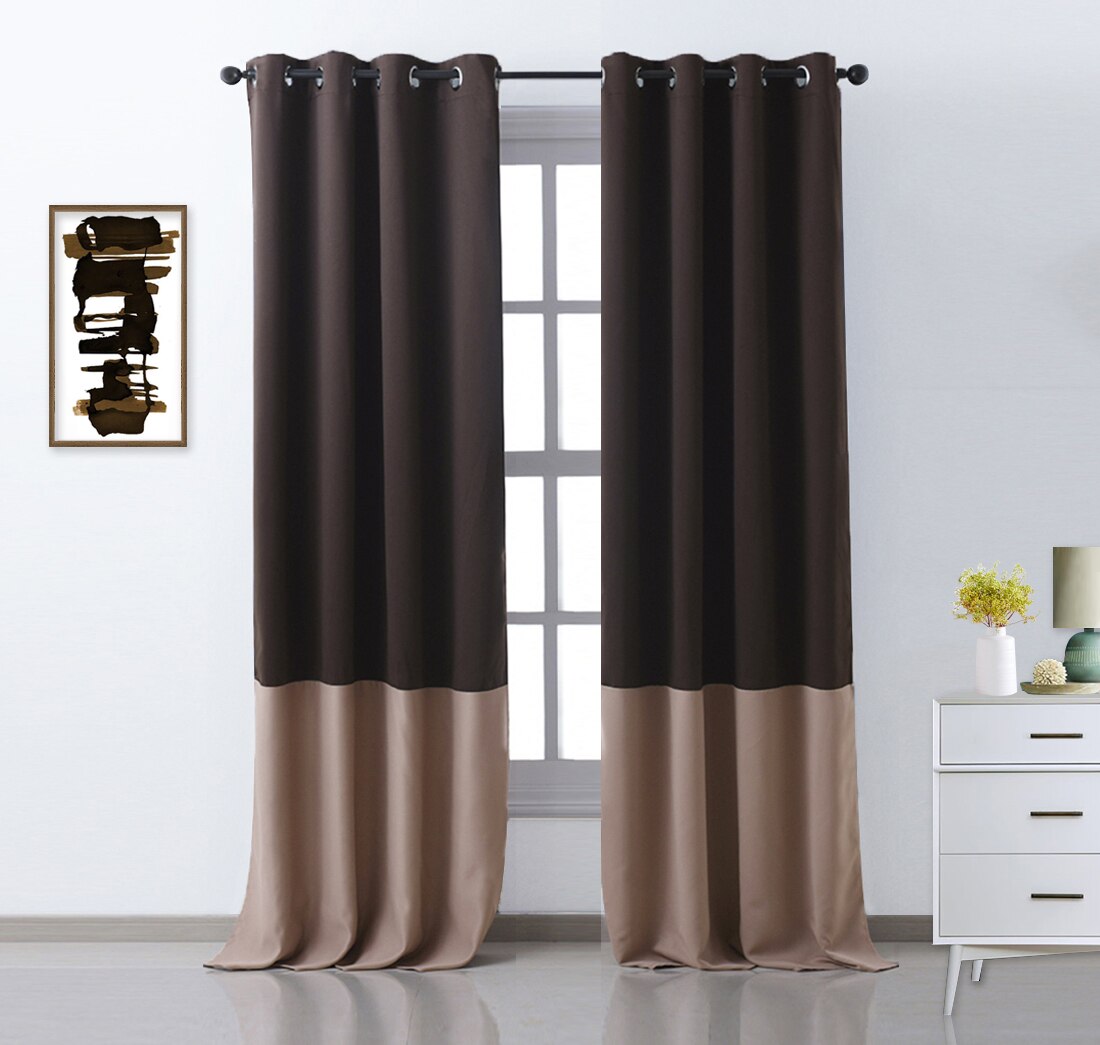 Leter du etter en stilfull og funksjonell løsning for vinduene dine? Vår tofargede mørkleggingsgardin i moderne design er det ideelle valget. Denne gardinen kombinerer elegant estetik med praktisk mørklegging, og skaper en atmosfære av ro og privatliv i ethvert rom. Med sin øvre del i en lys, luftig farge og en nedre del i en varm brunfarge, tilfører den et sofistikert og samtidig koselig preg til din innredning. Enten du ønsker å blokkere ut sollys for en god natts søvn, redusere gjenskinn på skjermen, eller bare skape en mer intim atmosfære, leverer denne gardinen både stil og funksjonalitet.