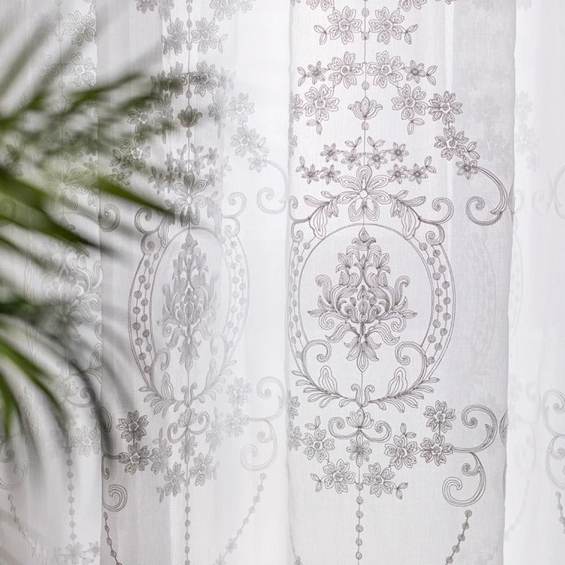 Oppdag vår tynne gardin med beige damaskmønster