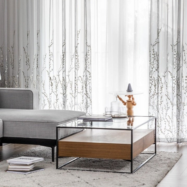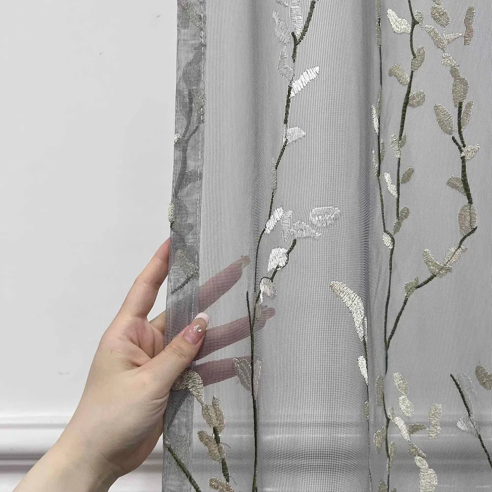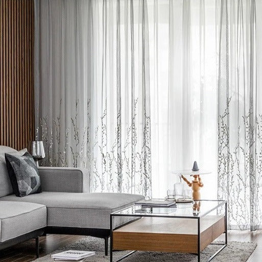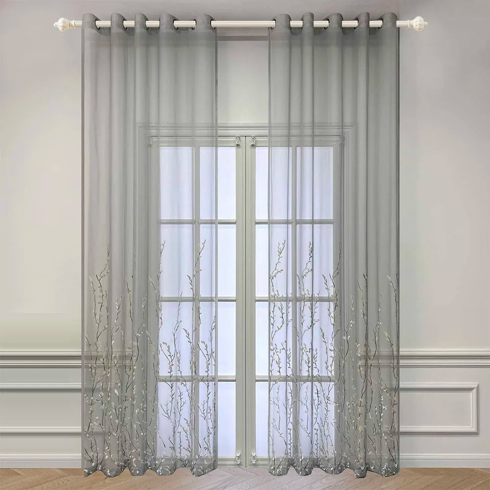 En Elegant Tynn Gardin med Brodert Greinmønster for Ditt Hjem