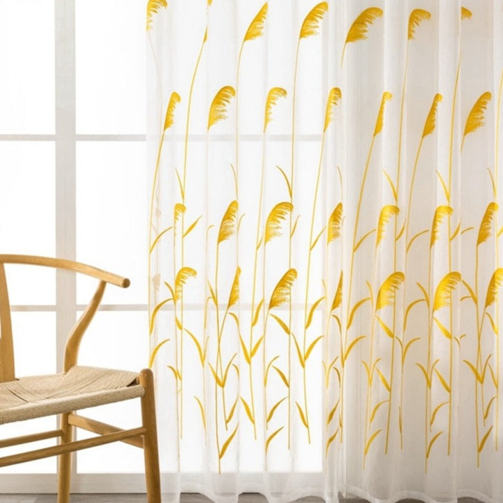 Gi hjemmet ditt et touch av naturen med vår Tynn gardin med broderte gule strå