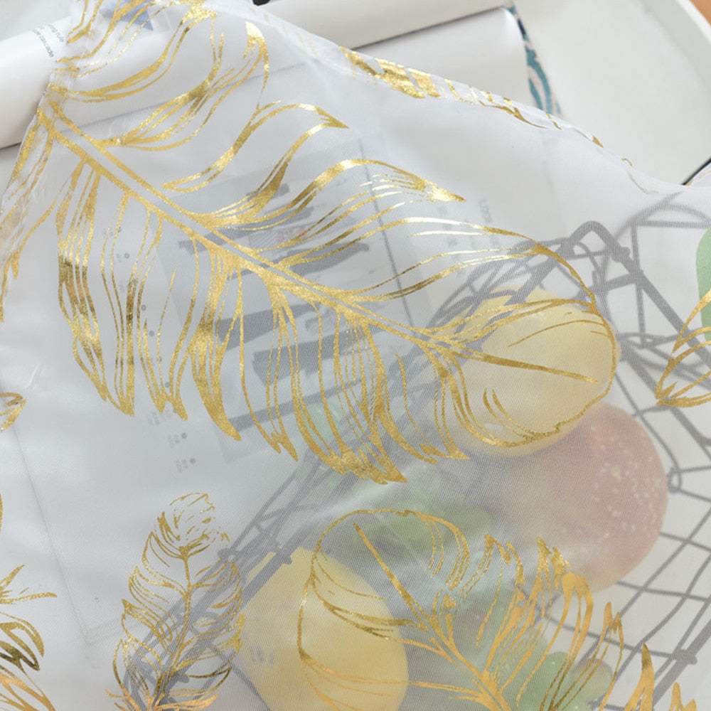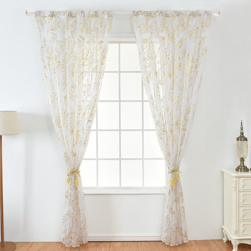 Fordeler med vår tynne gardin med elegant gullfjær mønster: