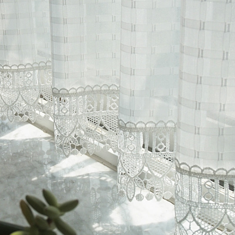 Oppdag vår vakre tynne gardin med rutemønster og blonder