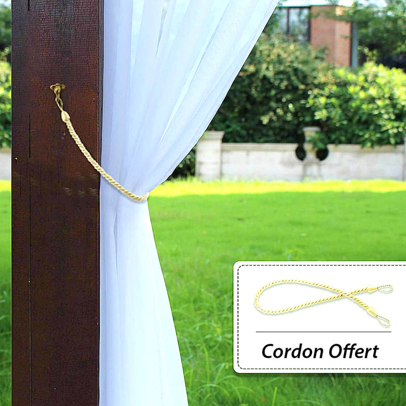 Denne tynne utendørs gardinen er designet for å forbedre din opplevelse i hagepaviljongen. Den slipper inn rikelig med naturlig lys, samtidig som den filtrerer bort skarpe solstråler som kan gjøre det ubehagelig å sitte ute midt på dagen. Forestill deg en sommerlunsj uten blending eller behov for solbriller. Gardinen gir også en følelse av rom og luftighet, og skaper en innbydende atmosfære der du kan samle venner og familie. Dens allsidighet gjør den ideell for å definere rommet, legge til et mykt preg og gi deg muligheten til å nyte utendørslivet med stil og komfort.
